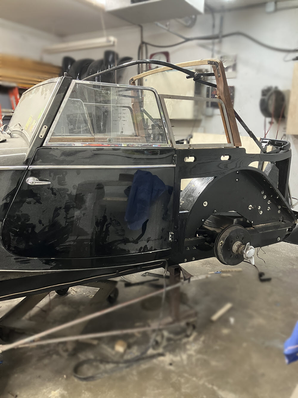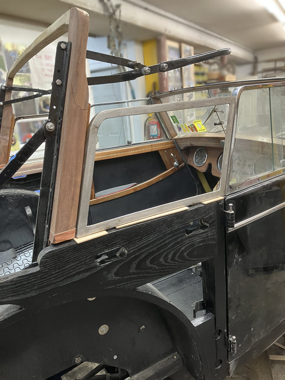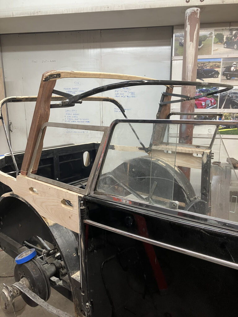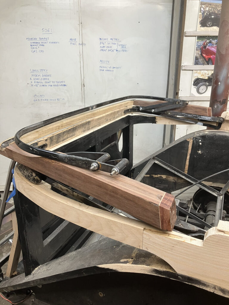 I’m rebuilding BENE because we USE it so personal preferences take priority over “originality”. After all, there are plenty of Morgan lawn sculptures already out there. The rear side windows I’m planning will always stay in place just like the door mounted windows. We drive hood down unless it is raining straight down. Having the side windows in place will provide a bit more wind protection for those longer jaunts (Rome to Brugge for example) that we occasionally do and will make the back seat more habitable those rare times when it will be occupied. Also; Kathi needs the luggage rack for when we travel (the shoes, you know).