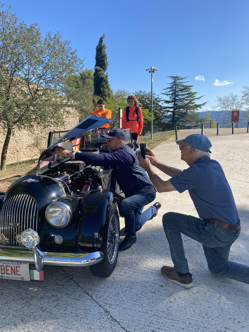 We met with Eduardo and Maria Sanchiz of the Spanish Morgan Club. Truly enjoyed their company and wished we could have spent more time. Eduardo’s +8 was being serviced so they led us on a drive up the mountains to Montserrat in his Porsche. Barcelona and Montserrat were probably the high point of the whole trip. Spain deserves more time. Regrettably we had our return flight booked and had to head back to the UK. (Update: We returned to Spain in 2024. See https://madaboutmorgans.com/the-last-last-tour/ ).